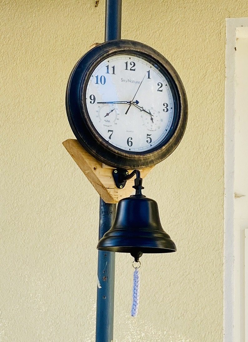 Wir haben eine neue Glocke um die großen Pausen abzuklingeln. Unser altes Klangspiel wurde mit dem Fußball so oft abgeschossen, dass es nicht mehr zu reparieren war. Es sah wirklich nicht mehr schön aus.