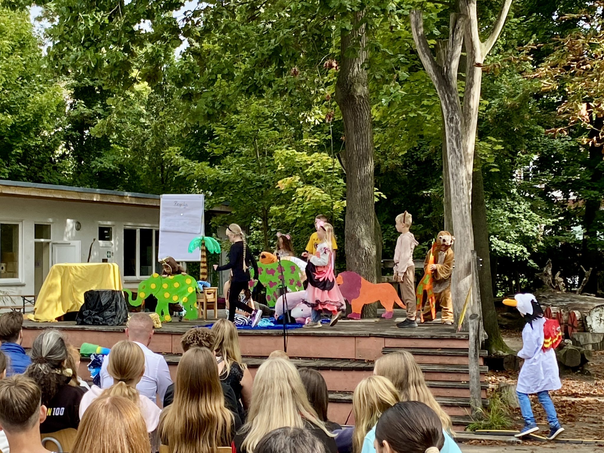 Zuvor hatten sich die neuen Erstklässler gemeinsam mit ihren Eltern, Freunden und Verwandten sowie mit der gesamten BOS-Familie auf dem Hof versammelt, um ein buntes und kurzweiliges Programm genießen zu können. Vor allem das von Schülerinnen und Schülern der Jahrgänge 2 und 3 aufgeführte Stück „Gut gebrüllt, Löwe – jetzt bestimmen wir“ begeisterte das Publikum.
