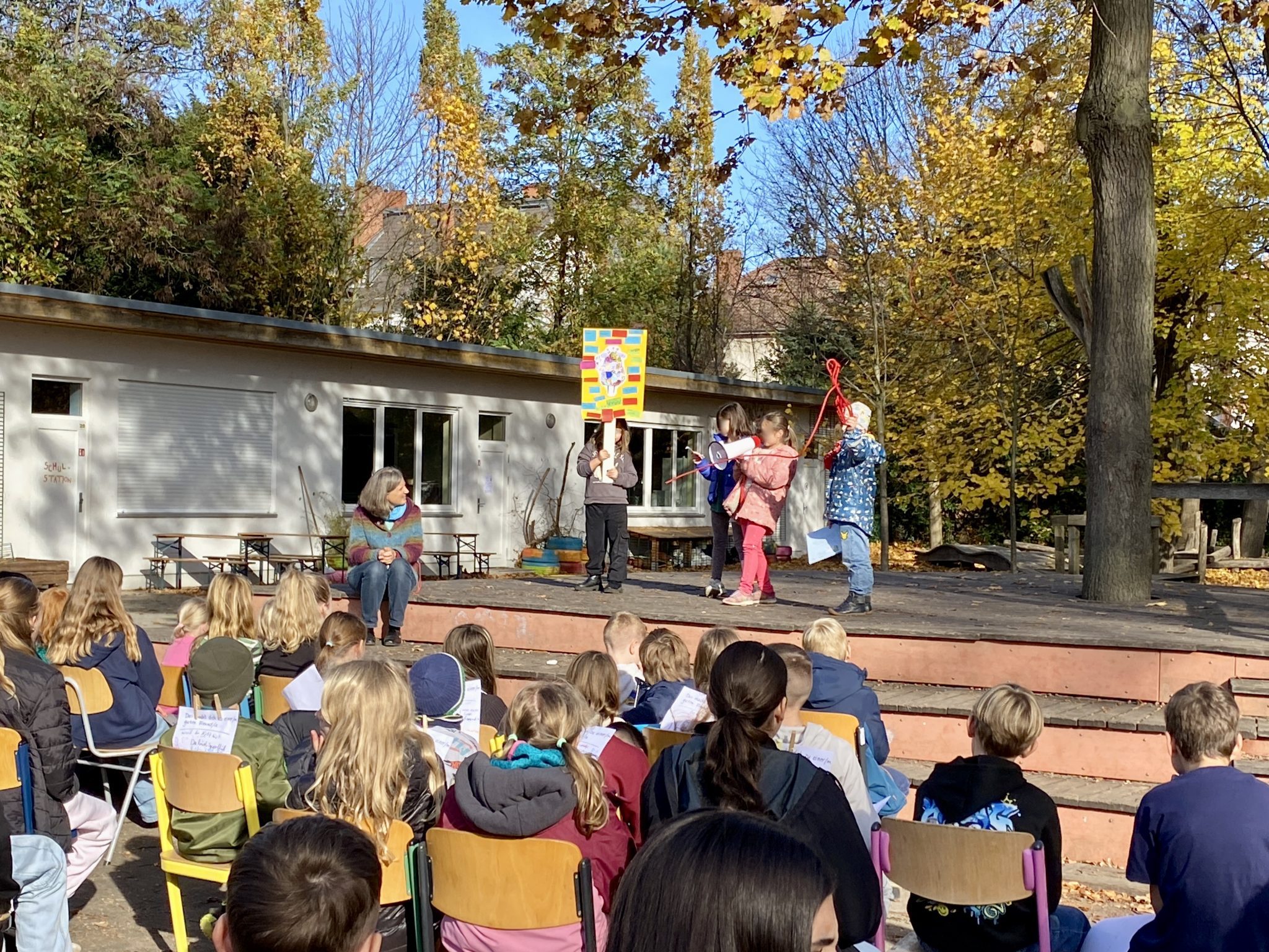 Bei herrlichem Sonnenschein wurden schließlich die Ergebnisse der Schulgemeinschaft auf dem Schulhof präsentiert.