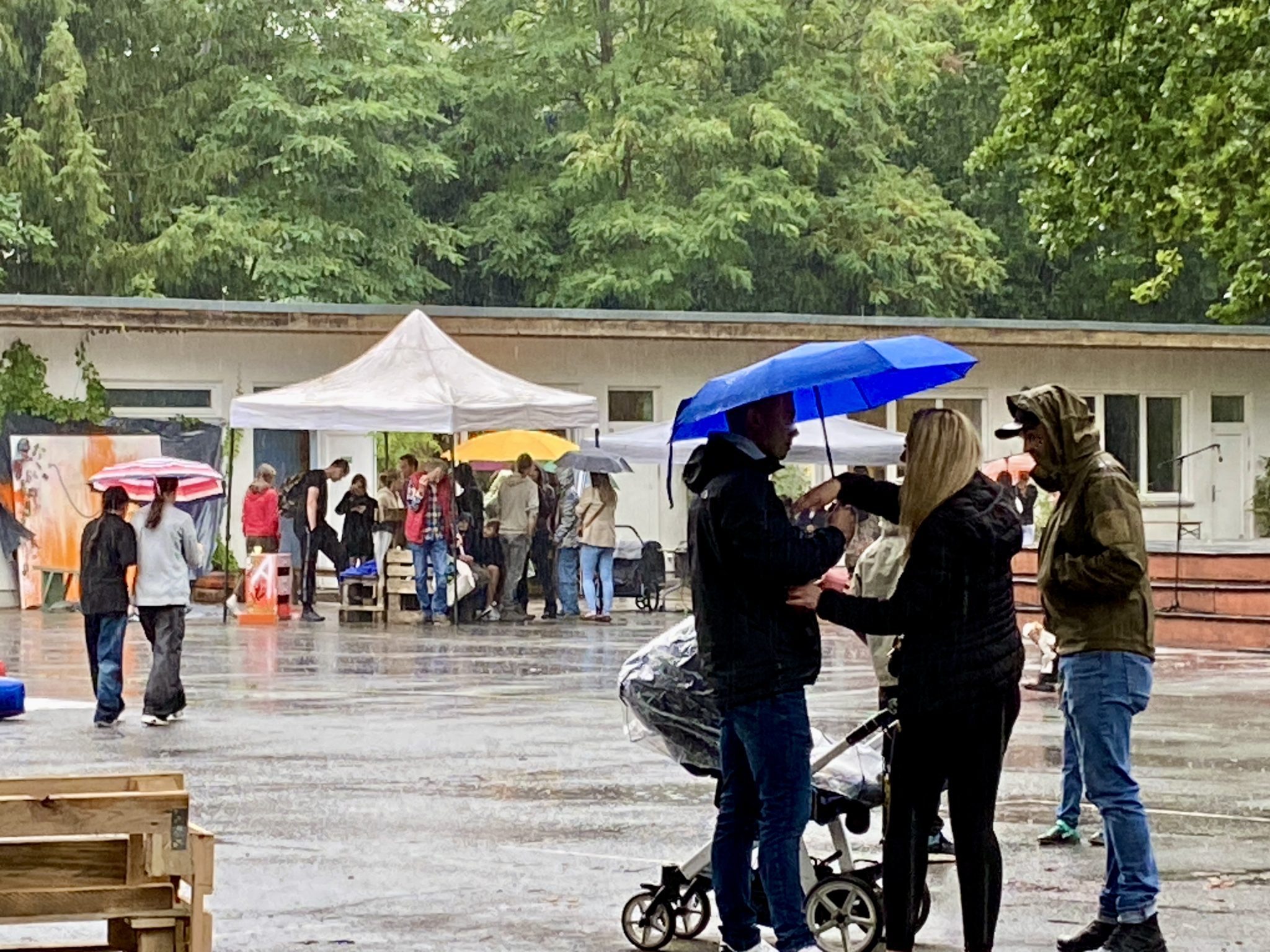Im vergangenen Jahr hatten uns leider die Wettergötter einen Strich durch unsere Planung gemacht, denn vor Regen und Wind mussten alle Gäste immer wieder in die warmen Räume fliehen. Aber Platz ist in der engsten Hütte, wenn man ihn mit lieben Menschen teilt und die Stimmung fröhlich ist. So genoss Groß und Klein das Fest, sei es im Elterncafé, beim Weihnachtsbasar, bei den musikalischen Darbietungen der Grundschule oder während der Regenpausen auf dem Hof beim Grillstand.