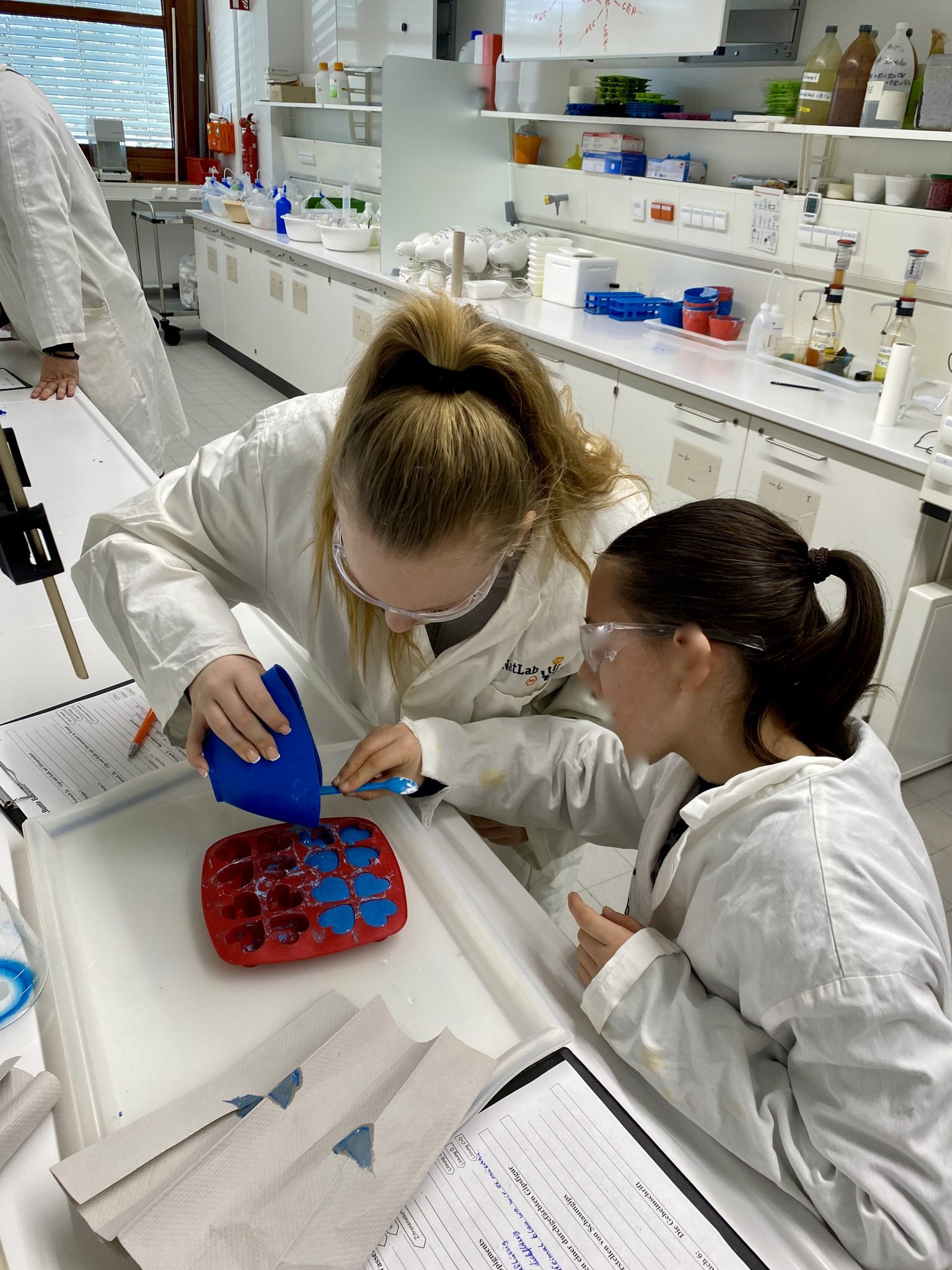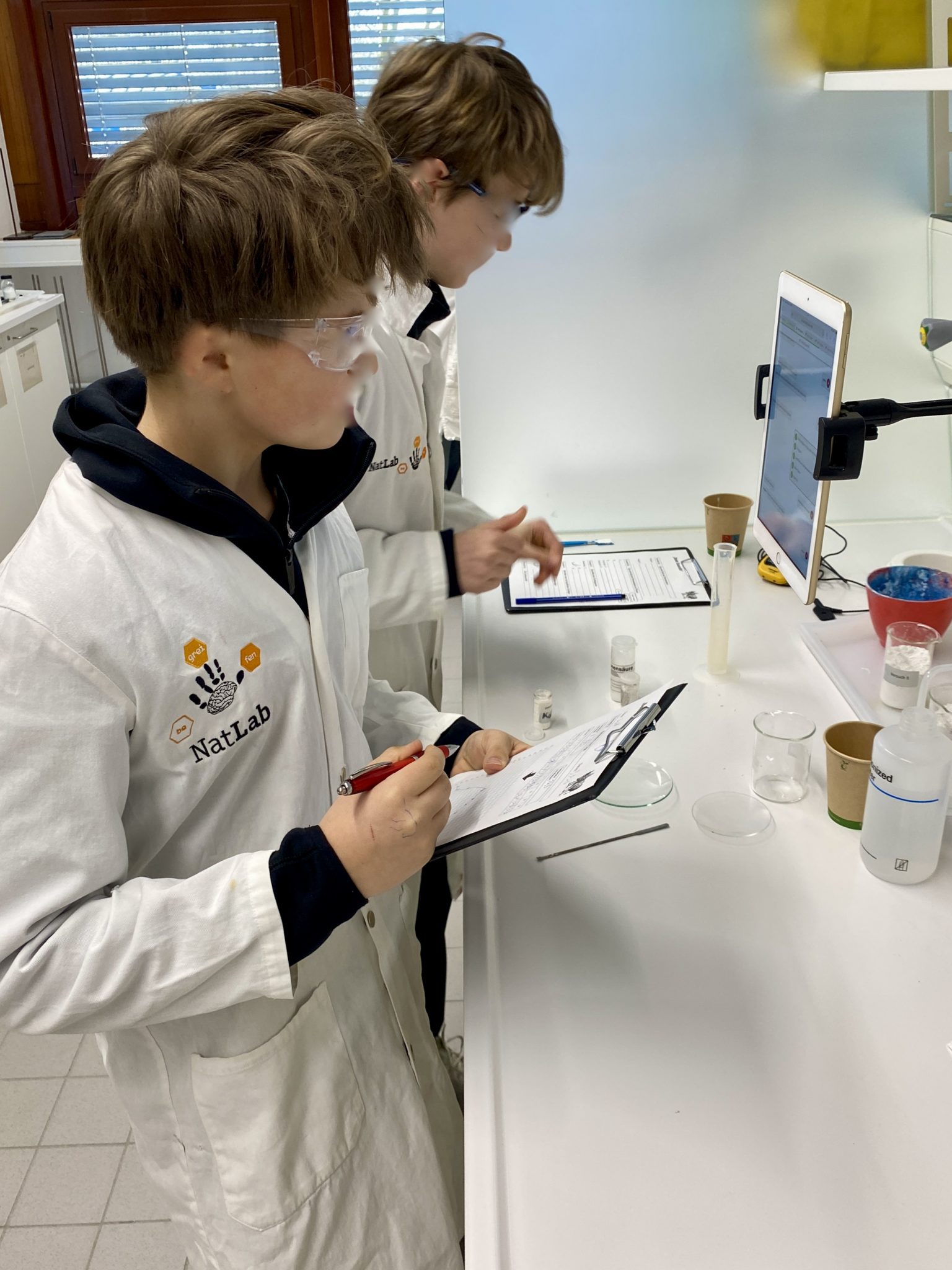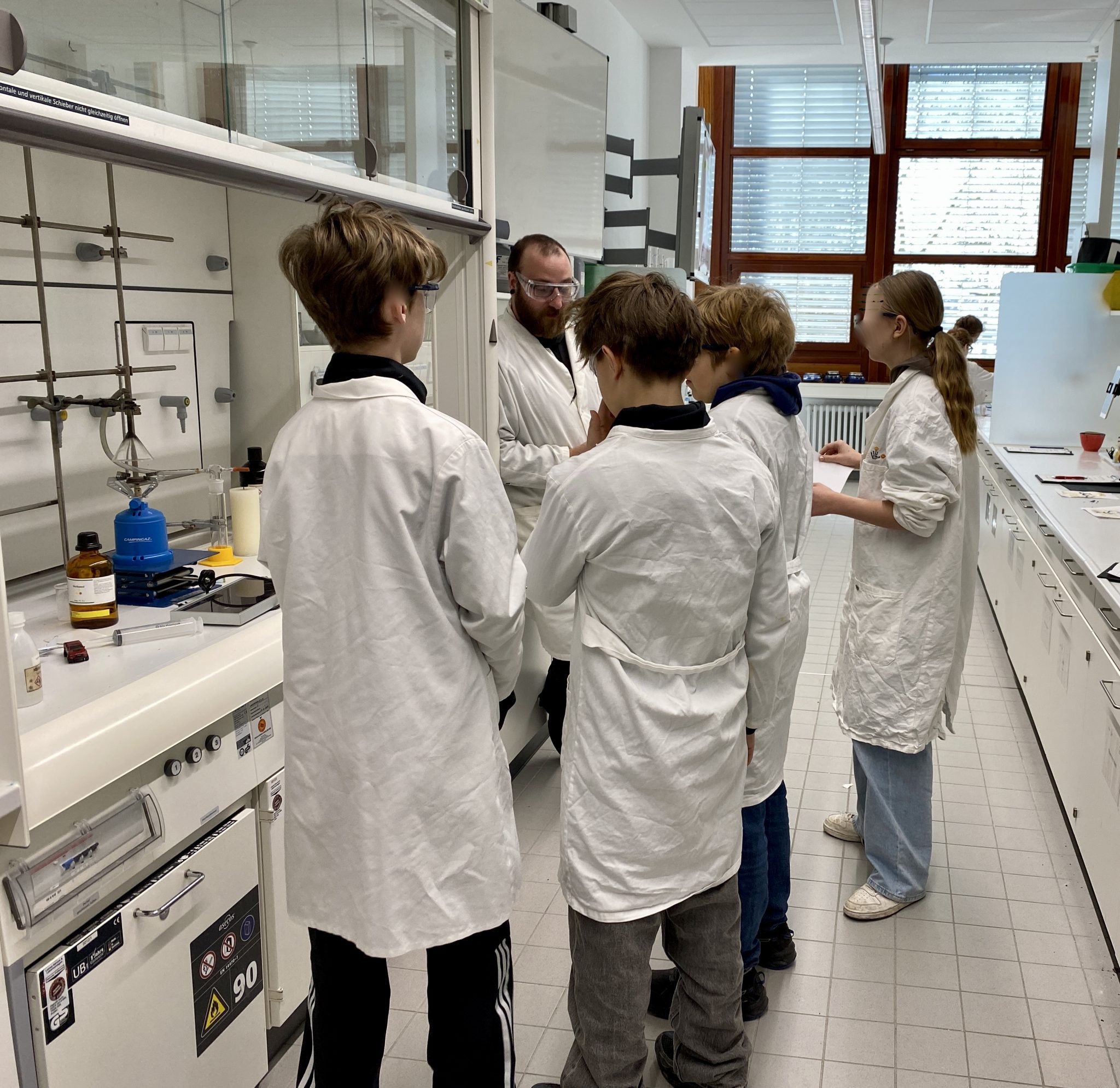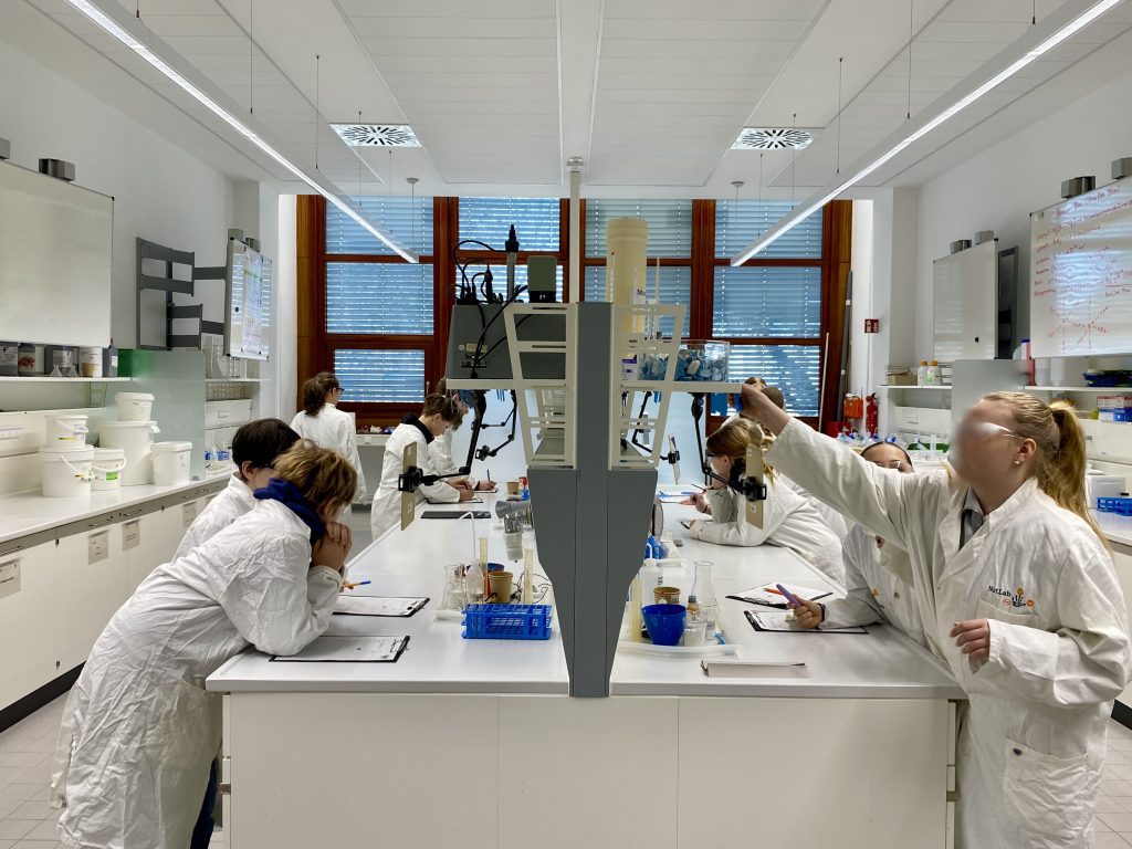 Unter fachmännischer Anleitung versuchten sich die Nachwuchslaboranten in angewandter Chemie. Es wurde gerührt, gemessen und beobachtet.