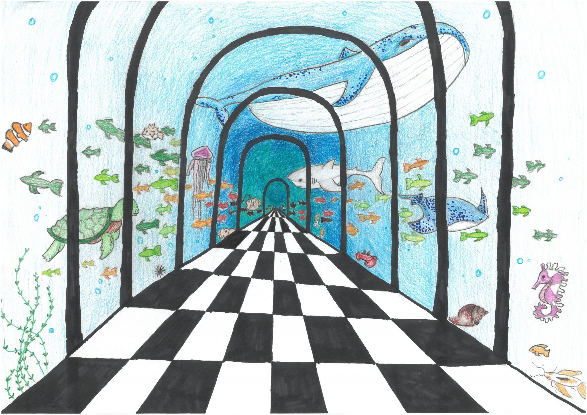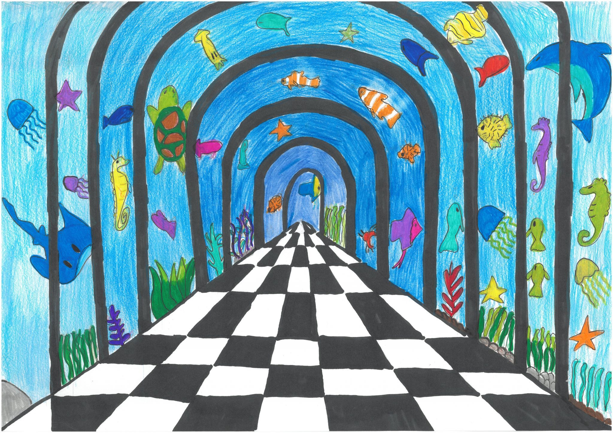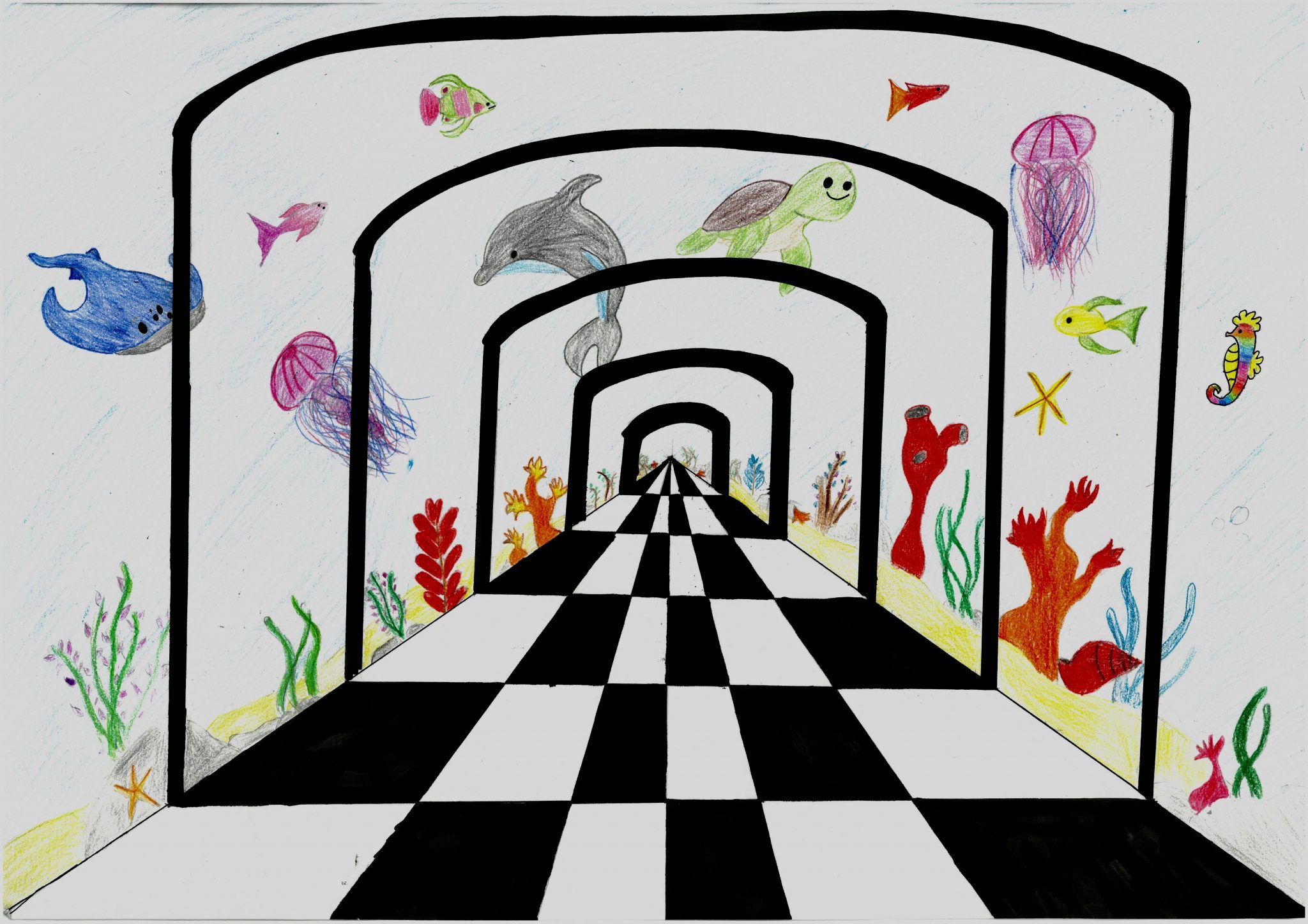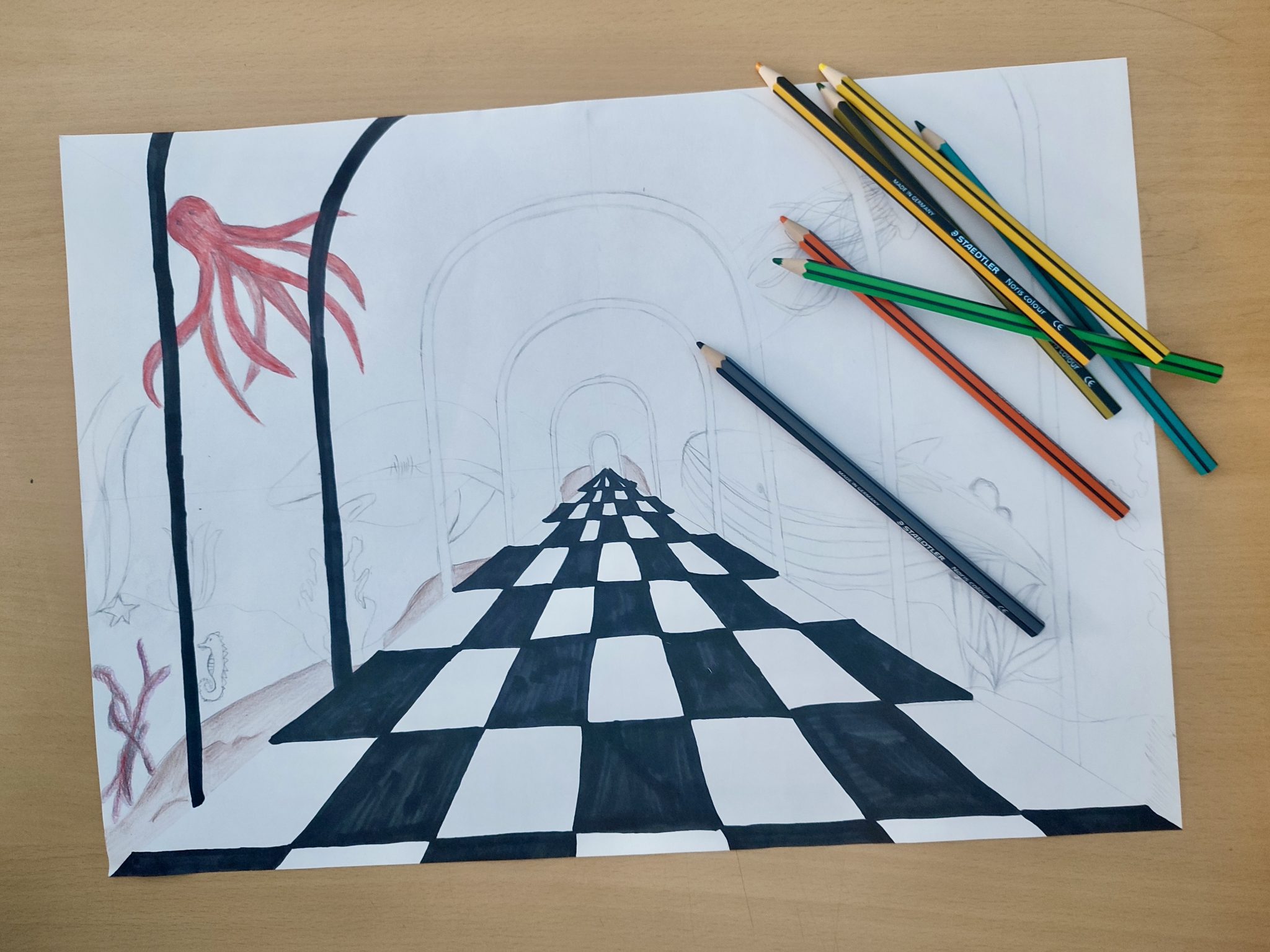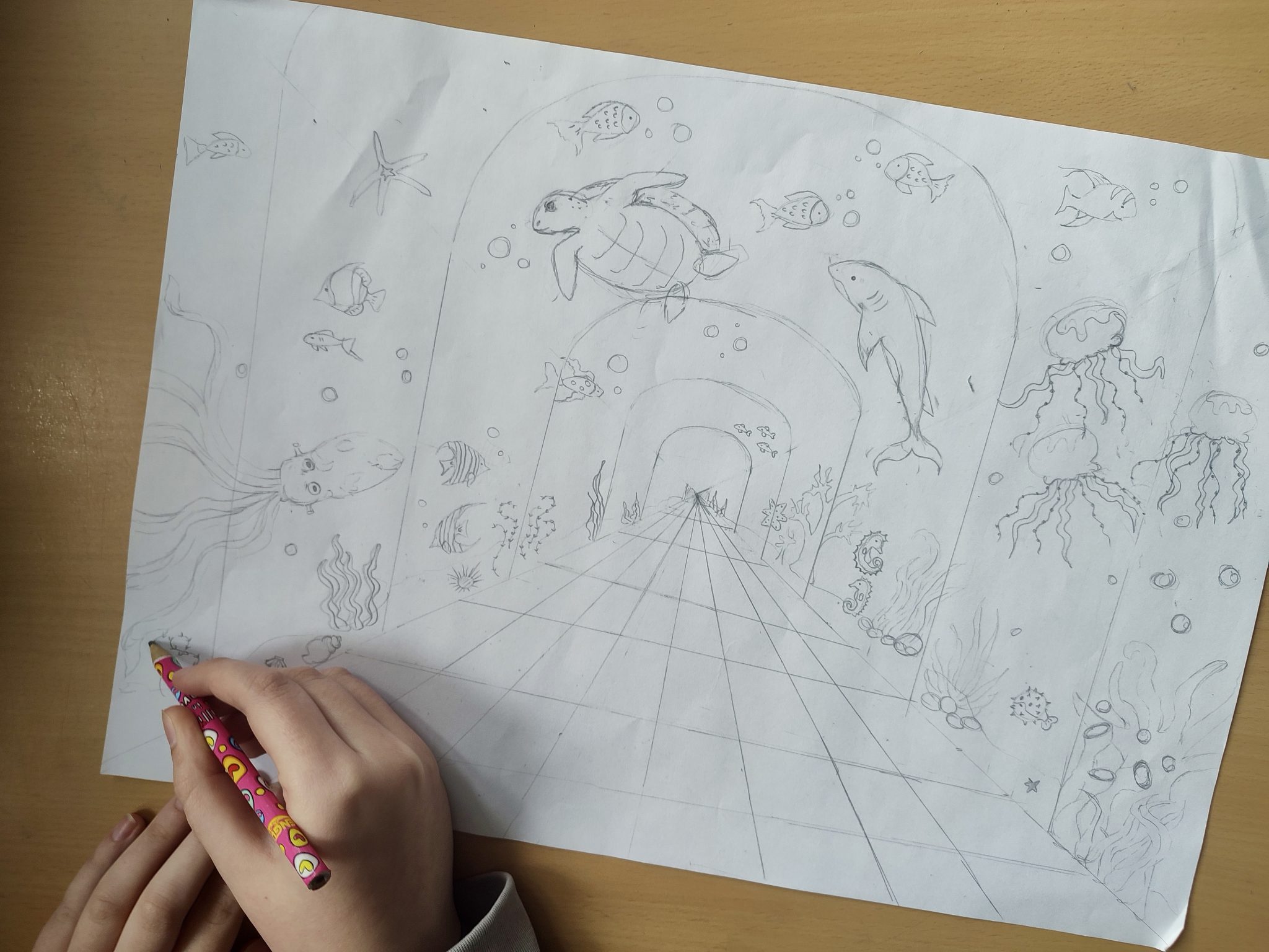 Das bunte Leben unter Wasser ist immer ein dankbares Motiv für den Kunstunterricht. Spannend wurde es aber, als die 9. Klassen dieses Thema mit der Zentralperspektive kombinierten. Hier ein Einblick in den Schaffensprozess.