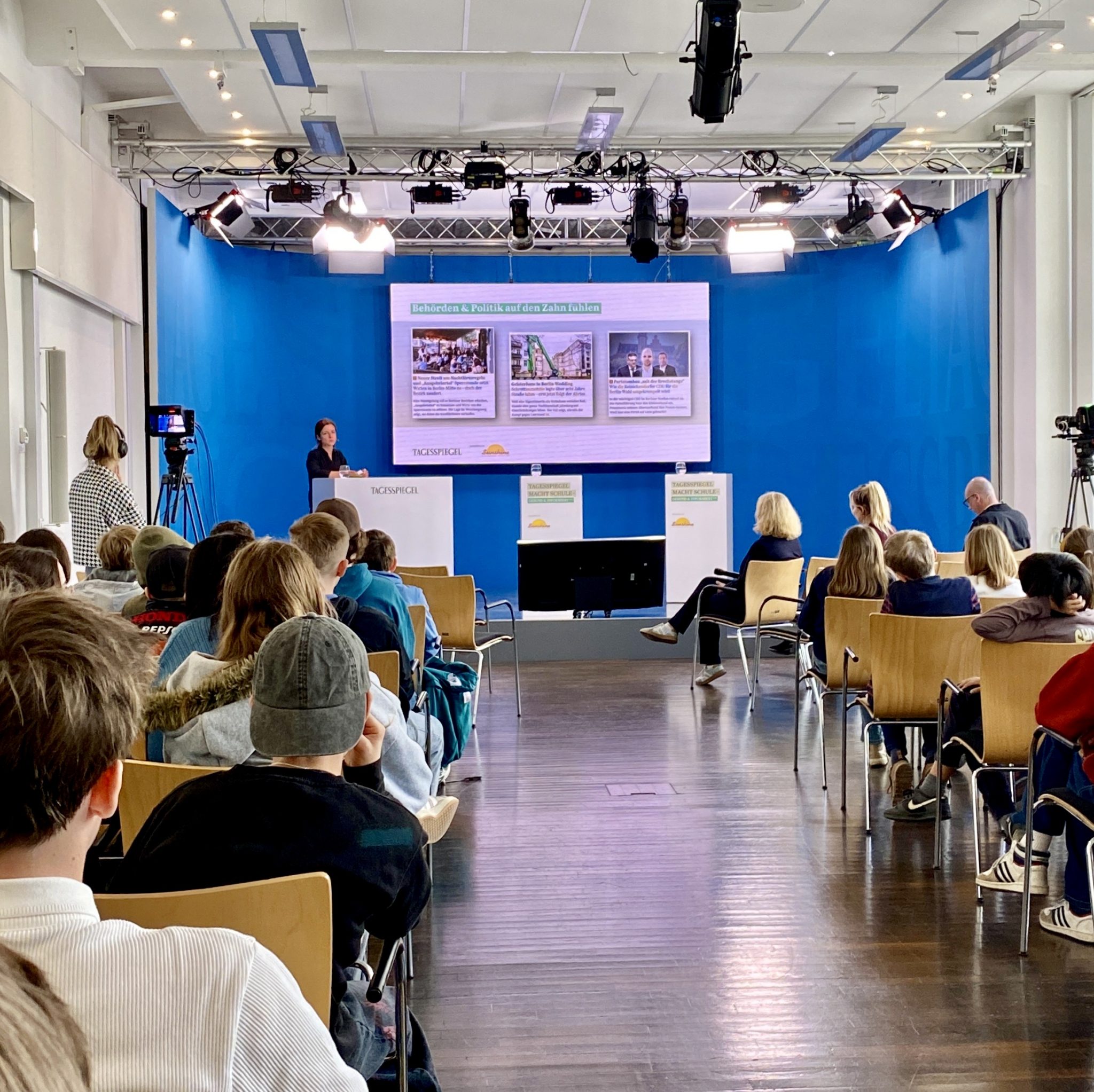 Redakteure der Ressorts Sport, Lokales und Newsletter gaben Einblicke in die Arbeit der Journalisten und in die Geschichte der auflagenstärksten Zeitung Berlins. Auch die Bedeutung eines neutralen und kritischen Journalismus für die Demokratie wurde besprochen.