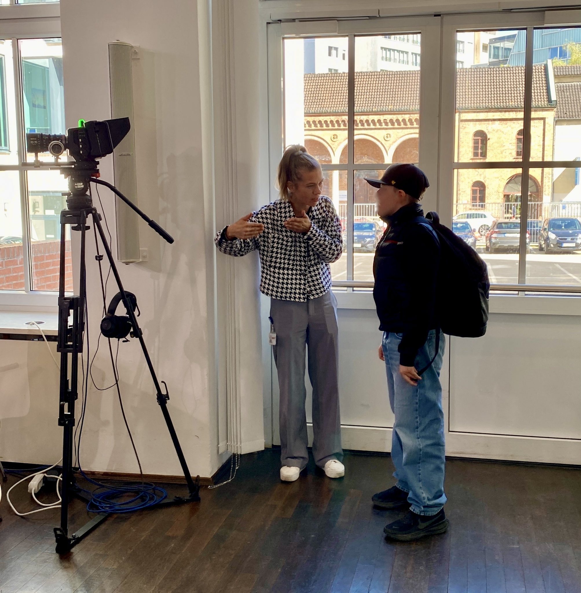 Schließlich wurden die zahlreichen Fragen der Schülerinnen und Schüler beantwortet. Die drehten sich nicht nur um die Arbeitsbedingungen der Journalisten, sondern auch um technische Fragen. Da die Veranstaltung in einige Klassenzimmer übertragen wurde, war auch Kameratechnik zugegen, die im Anschluss geduldig erklärt wurde.